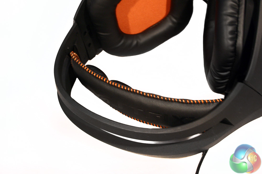 The headband is a nice mix of black leather and orange stitching, which gives it a real quality look and feel. The fact that the headband and plastic frame are separate is testament to its ability to take some damage – as it keeps everything as flexible as possible.