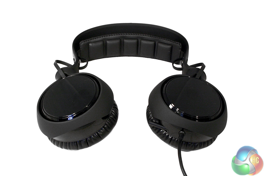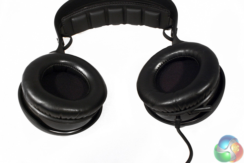 The headband is cushioned quite well, though not to the extent some headsets are. However more interesting is the fact that it is not adjustable, but designed to have give in the plastic portion of the headband. You never actually touch the metallic headband, which while comfortable did give us some issues with keeping it in place when we tested the same design on the SR910.