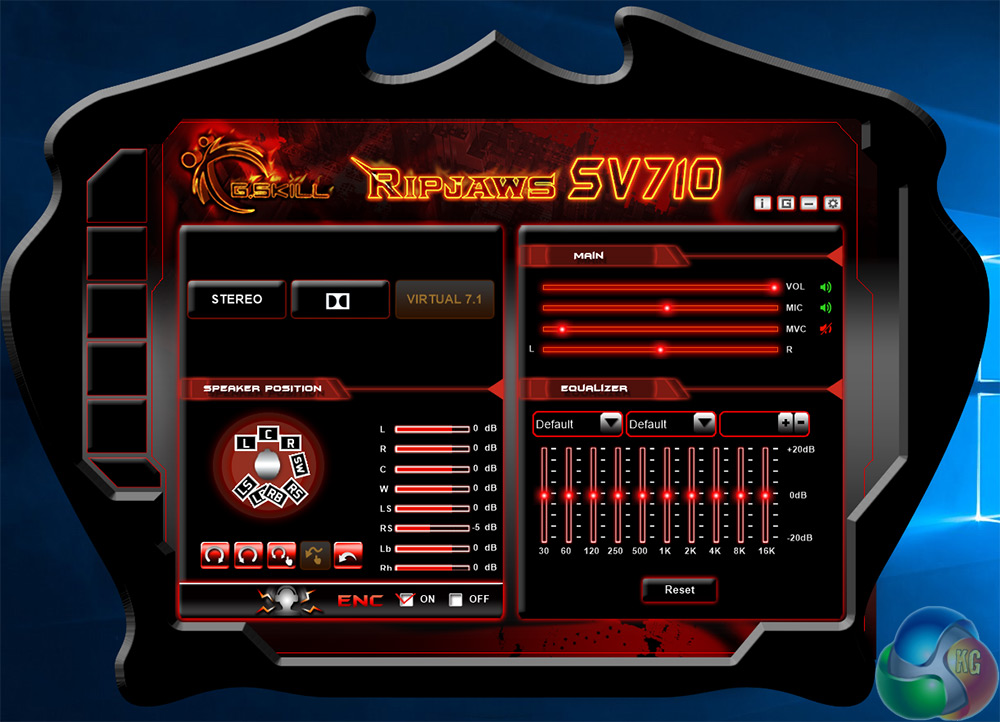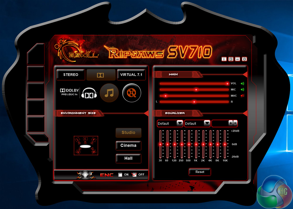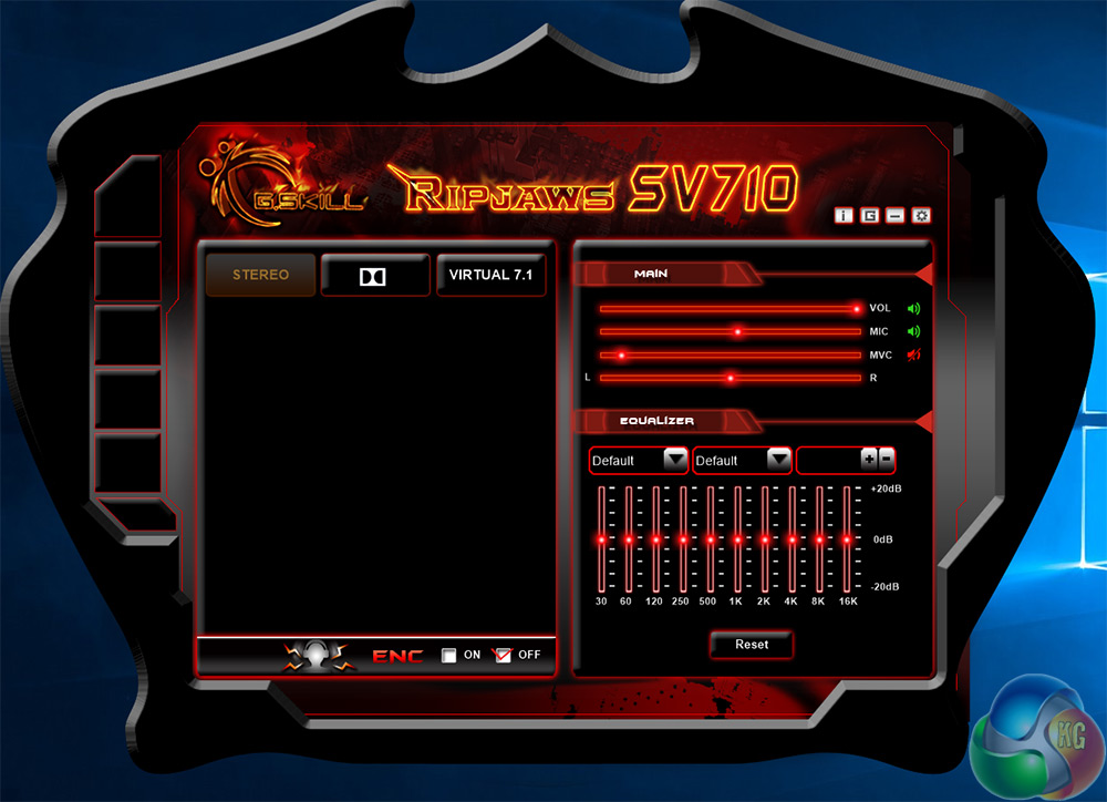 The back-end software for the G.Skill SV710 is reasonable. It has the options you would expect for a headset at this price point, though I do wish G.Skill would do something about the layout, if only for aesthetic reasons. The red window would be enough on its own, but for some reason, there is a large, black outline that looks like forum signatures of the mid-00s. It is an odd choice that serves no function other than to make the windows take up more display space.