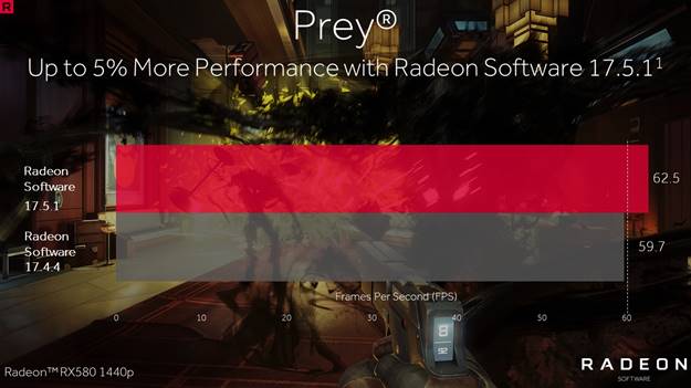 - Up to 5% faster performance using Radeon Software 17.5.1 with Prey DirectX 11 on the 8GB Radeon RX 580 than with Radeon Software 17.4.4