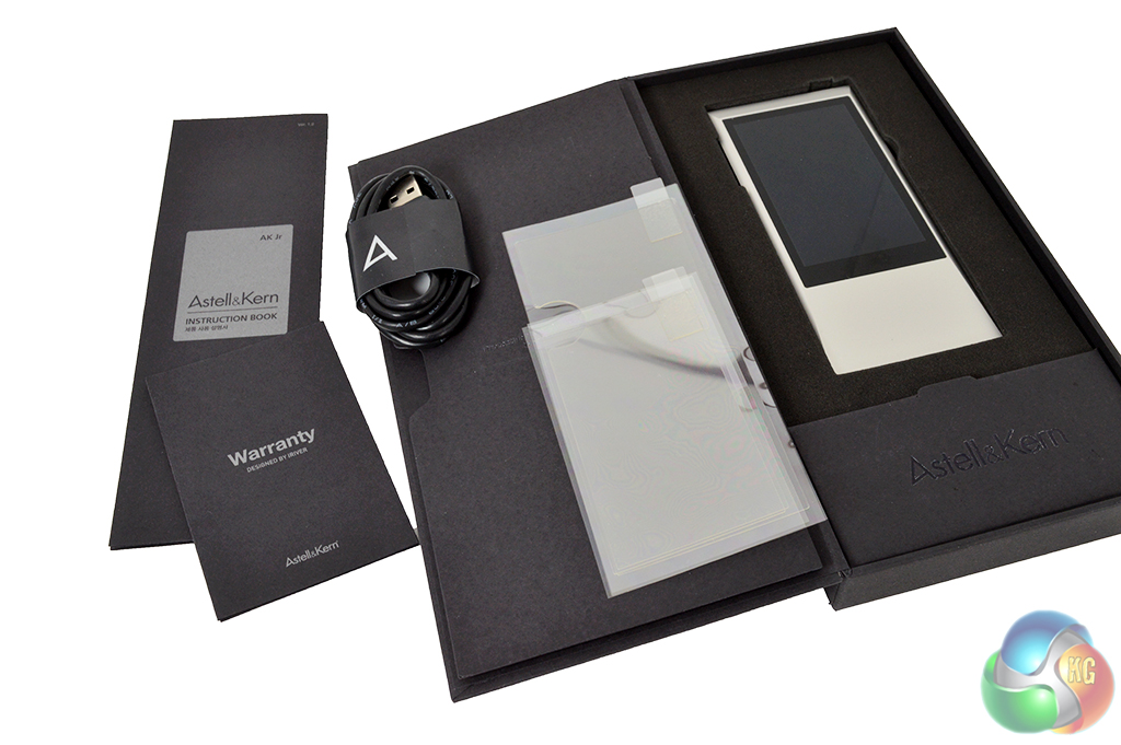 Just by looking at the box, you can tell the Astell & Kern AK Junior is a high end product. The packaging consists of a sleek box with a magnetic lid. Inside you will find the player itself held in place by a foam cut-out.