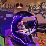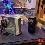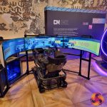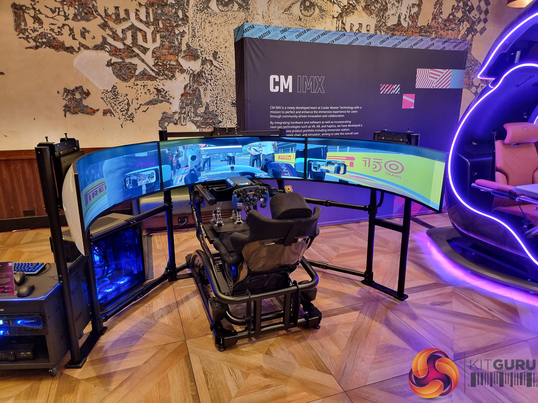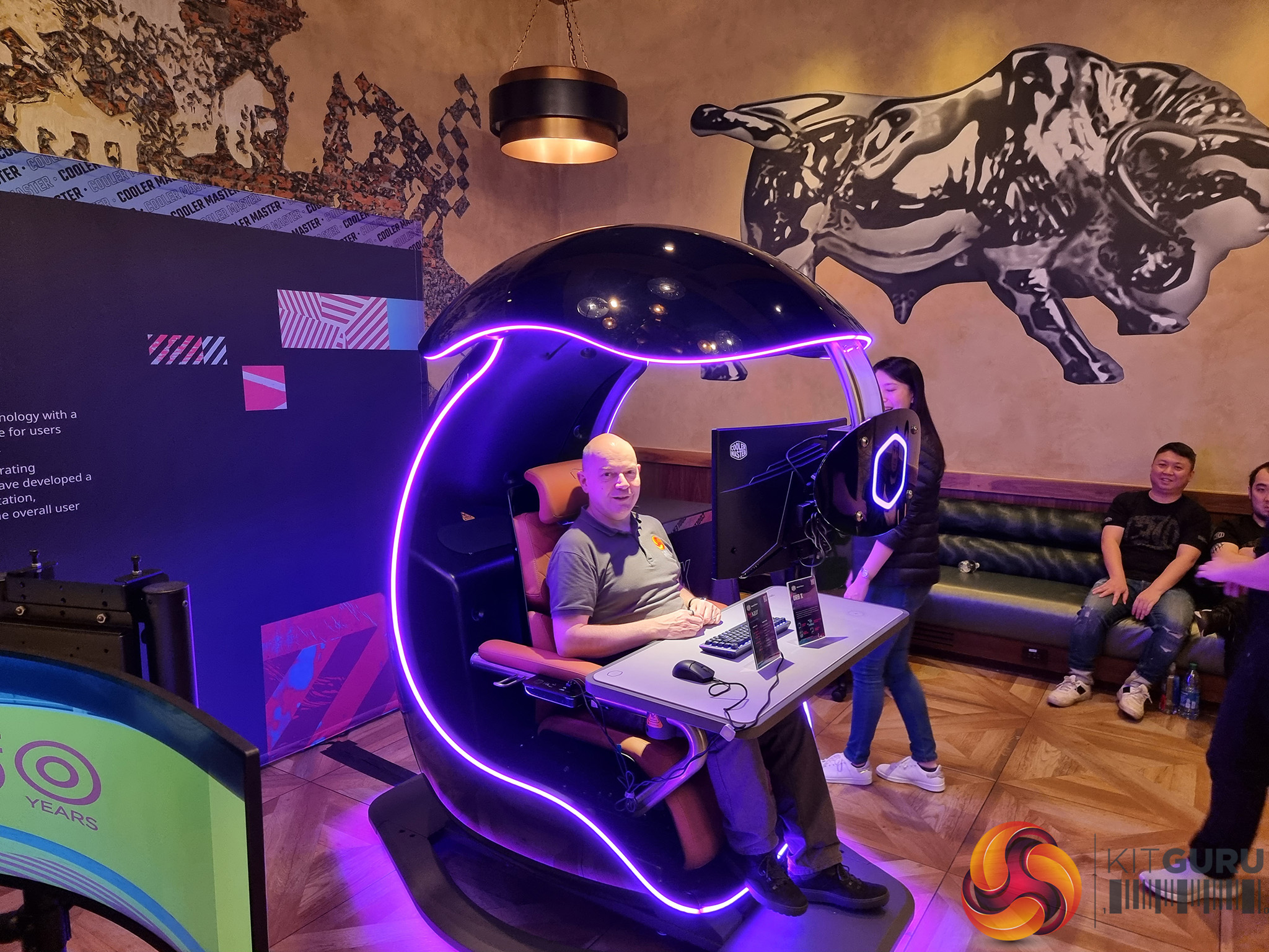 In a similar vein, Cooler Master also has a full racing simulator setup, which will be packaged and sold in the coming months, although you'll need to supply your own monitors. Finally, we have the Orb X, which has been covered a few times already. This is Cooler Master's immersive system setup, enclosing the user in an orb with a reclining chair in the centre and room for triple monitors.