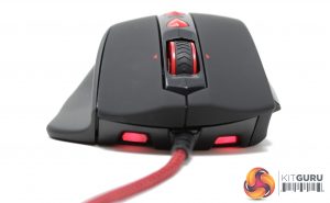 The left side of the mouse shows the LED indicator in more detail, alongside the DPI switch and the traditional back and forward buttons, which can be changed to suit almost any function from within the Viper software. The front of the mouse shows off two RGB LEDs that are linked to the profile indicator and a third LED at the back.