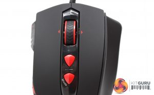 While one of the two buttons below the scroll wheel is clearly labelled “mode” and acts as a way to shift between profiles on-the-fly, the other acts as an adjust lift button, but can be changed to any number of functions. The DPI button is strangely located as a switch at the base of the left hand side.