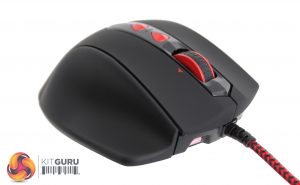 Only six of the seven 4.9 gram weights can be used at any given time, increasing the mouse from 193 grams to a total of 222.4 grams overall. The weights are placed into the mouse via a tray that is only accessible through unlocking a switch on the bottom.