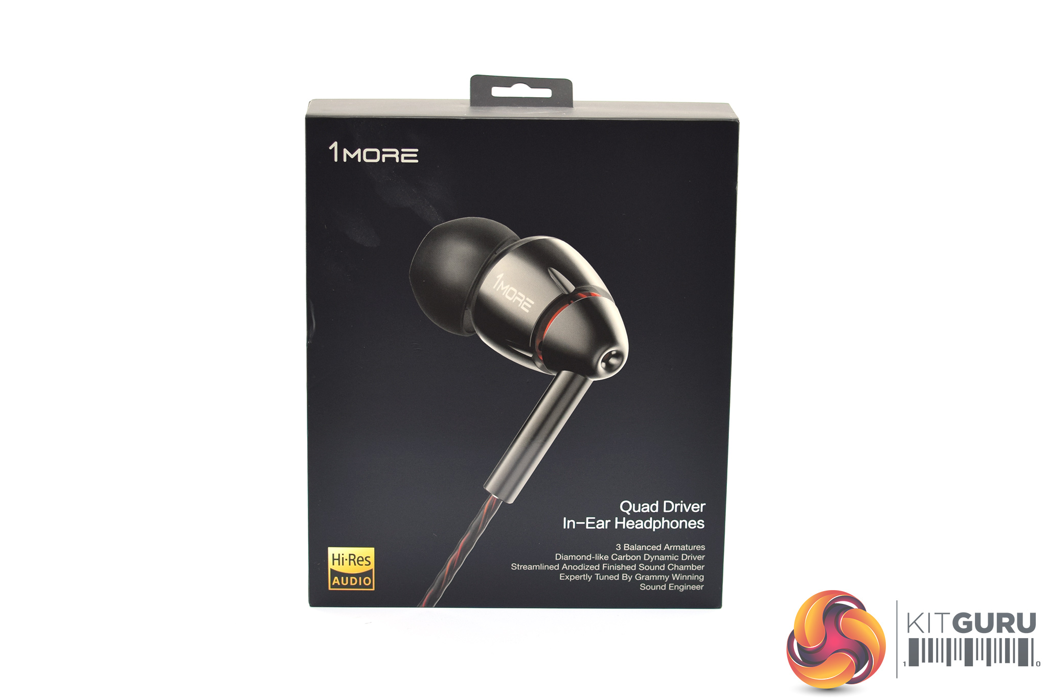 Once this outer sleeve has been removed, the box itself is revealed – this is much more plain, with just the 1MORE logo and ‘hear more' slogan on the front.
