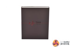 The 1MORE Quad Driver E1010 ships in a relatively simple black box. In actual fact, the black cover you can see is just a sleeve, while the box itself is more of a brown colour. In any case, a large photo of one of the earbuds is visible on the front, with some product information positioned in the bottom right corner.