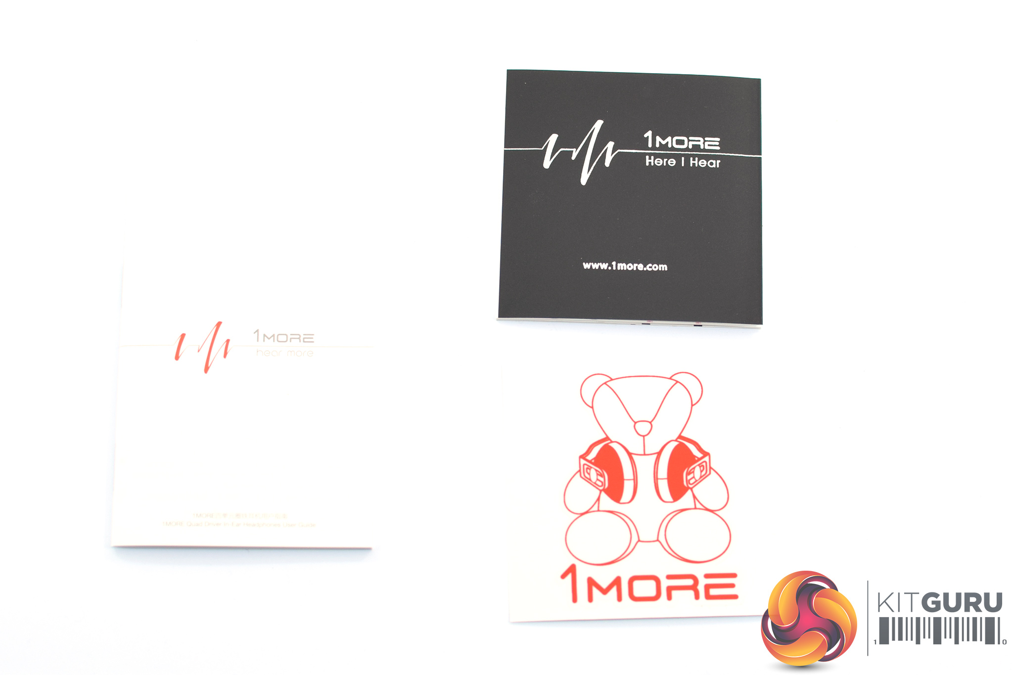Lastly, a few small pieces of documentation are also included – one quick start guide, one 1MORE product catalogue, and one small sticker of a teddy bear wearing headphones – because why not?!