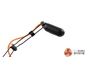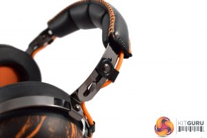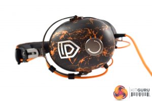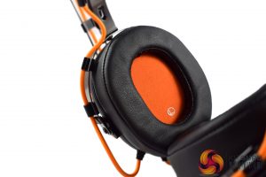 Starting with the earcups, we can immediately spot the Penta-inspired design with its bold, orange accenting, while the Penta logo is also placed on the back of the earcups. These earcups use a closed-back design, too, which is worth noting. Lastly, as you can see in the image above, the right earcup features an on-ear volume wheel.