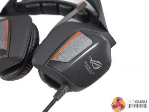 Starting with the ear-cups, we can immediately see that the Centurion uses a closed-back design. There is also some trademark ROG ‘Mayan-inspired' detailing on the back of the cups, while the ROG logo illuminates red when the headset is plugged in.