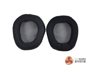 ROG also supply replacement ear cushions – by default the headset has leather cushions attached, but you can swap those out for some fabric cushions (pictured above, left) if you prefer.