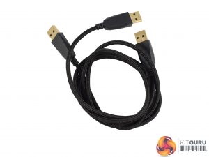 Two cables (not including the headset's own cable) are included for use with the USB station – pictured on the left is the 1.5m USB (type A) cable which requires two USB ports from your PC due to the added power requirements of the control station.