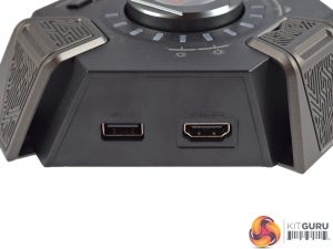 Before coming to the headset itself, it is important to note that the Centurion requires a small USB station to function properly. This acts as an amplifier (using the ESS 9601 amp) but also as a control station. The front wheel lets you select which audio channel you want to adjust, while the wheel on the top of the station can be used to adjust the volume or select a specific game profile. We go into more depth about this feature on the next page.