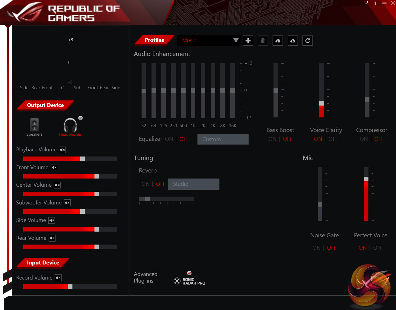 Not so with the Centurion's software – from this one page you can select a number of pre-configured profiles (visible in the screenshot above, right), adjust the EQ, control each individual channel's volume and tinker with some added effects like bass boost and compression.