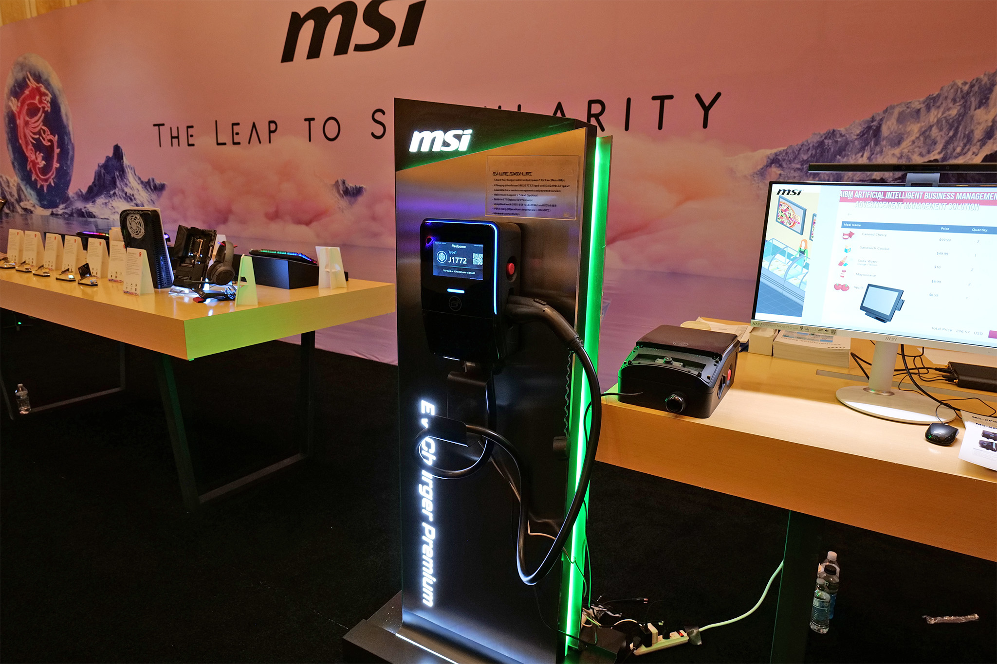 One surprise was the reveal that MSI is going to be producing an EV charger known as the MS-XP01 EV Premium offering, up to 13.2kW output. This will be manufactured entirely in-house at MSI and sports a 7in OLED panel to display charging status, while it is also IP55 certified. The MS-XP01 is slated to arrive in the J1772 standard for the US, and Type 1 or Type 2 for European markets.