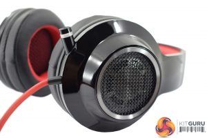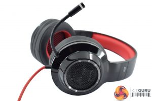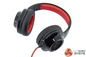 The headset itself is available in three difference colours: black and red, black and green, white and blue. We were sent a black and red sample.