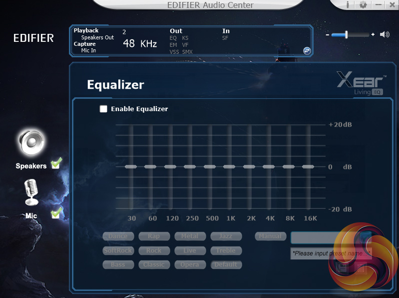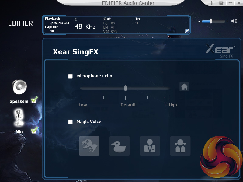 Above you can see all the different options available in the software, and being honest, I am not impressed. Having an EQ is useful, but most of the software is junk to be completely honest – things like ‘Xear SingFX' and ‘Environment Effects' are just gimmicks that essentially just add sound effects to the audio feed.