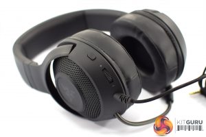 Other features to note include the on-ear controls. There’s no in-line remote with the Kraken X, but instead you get a volume wheel and mic mute button on the back of the left earcup.