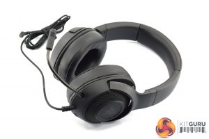 Taking a look at the headset itself, it is immediately recognisable as a ‘Razer Kraken’, with very similar design language to other, more expensive headsets we have reviewed in the past. It’s all matte-black – with no colour anywhere on the headset – while the frame and ear cups are all made from plastic.
