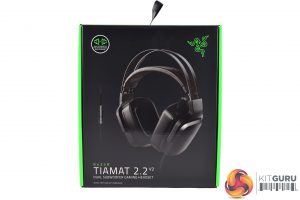 The Razer Tiamat 2.2 V2 ships in a box that is typical of Razer – meaning there is a triple-headed snake logo, green accents and a large product photo on the front.