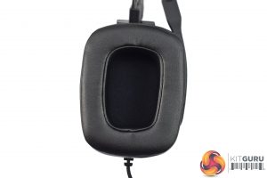 On the inside of the cups we can see the foam cushions have a faux-leather finish. I personally prefer fabric cushions as faux-leather cushions make my ears very warm during extended use, but that is obviously just personal preference.