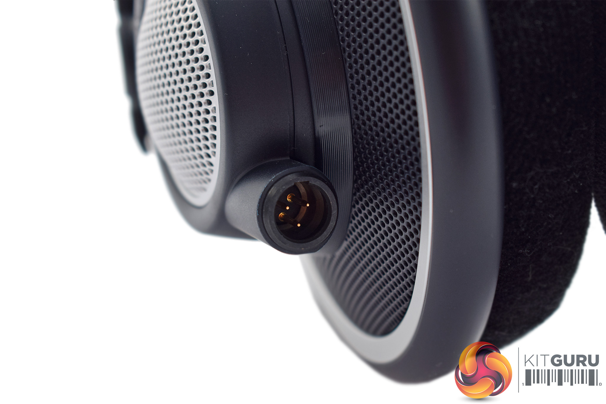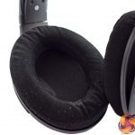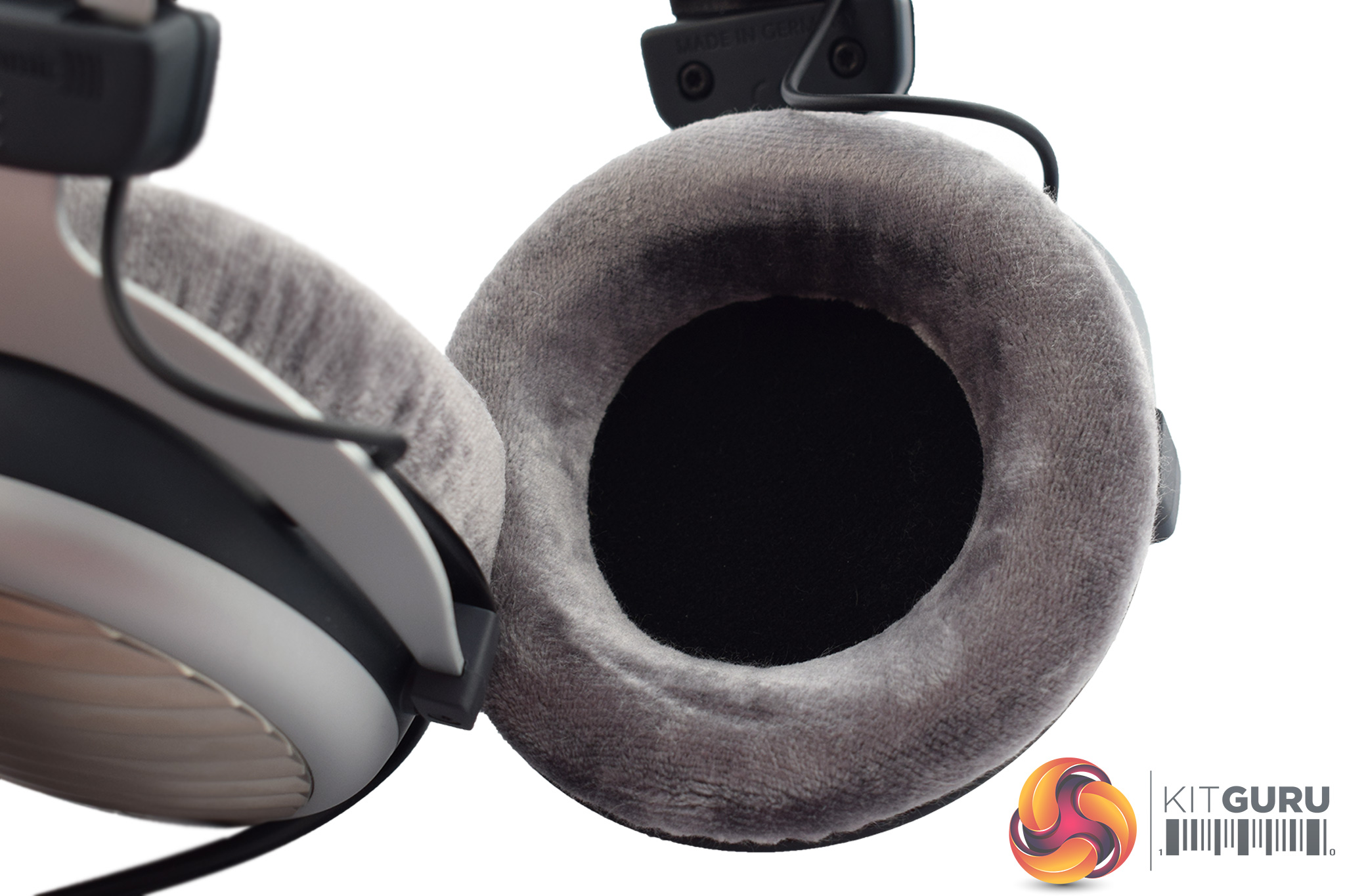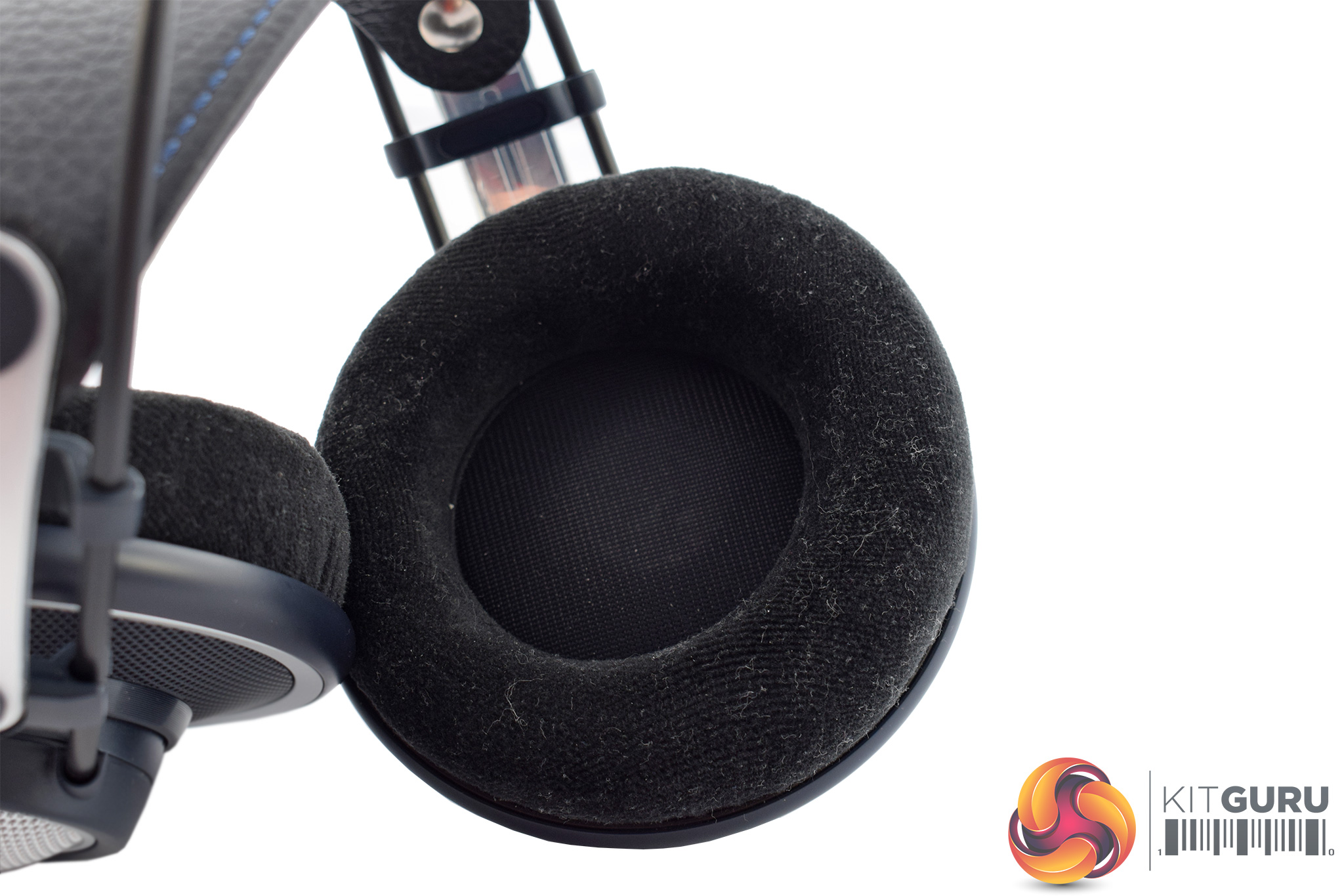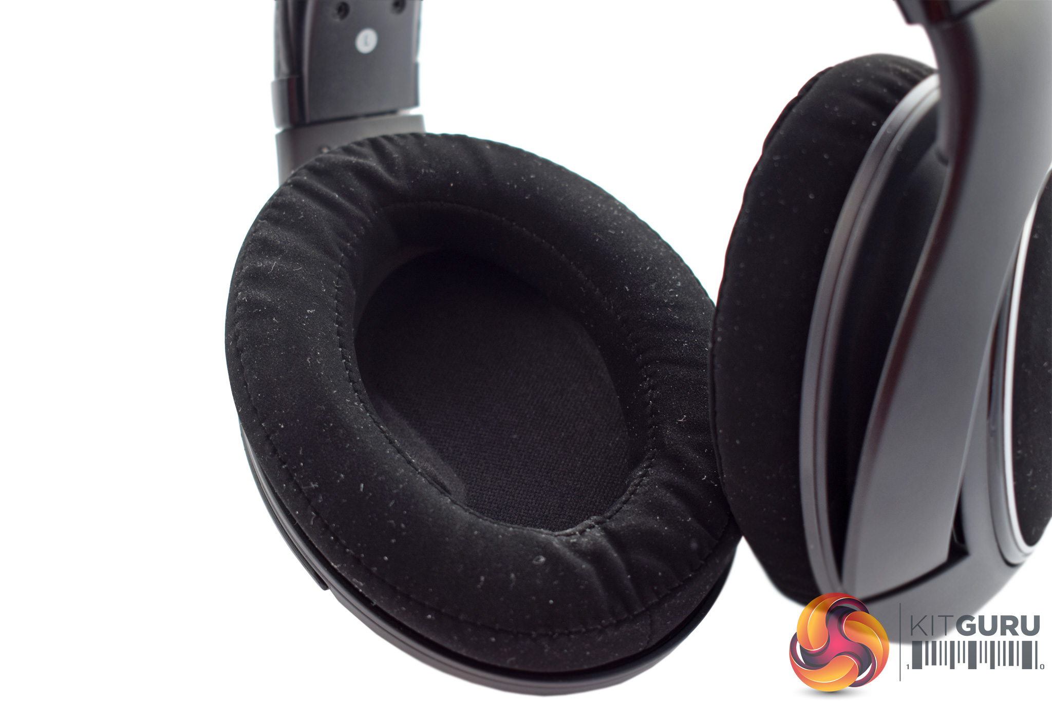 These headphones are open-back in design, while some silver accents add interest on the back of the ear cups. The ear cushions themselves are filled with a very stiff foam and are covered by a velour layer.