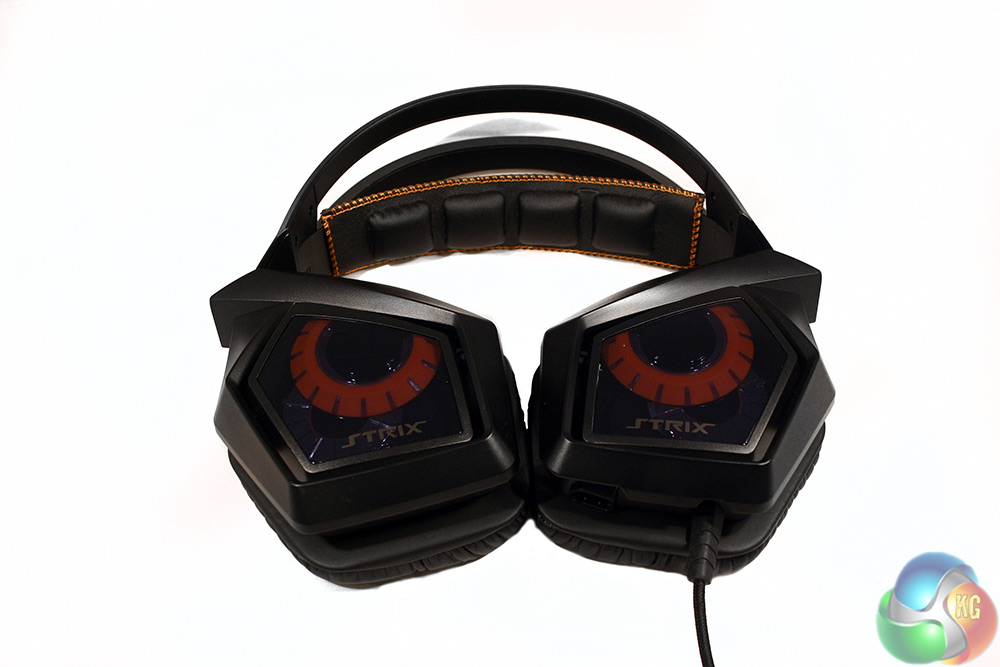 The headset itself will be very familiar to anyone that read our review of the STRIX Pro gaming headset, as its styling is almost identical. The only really noticeable difference is how the ‘owls eyes' on the side look, as on the 7.1, you can clearly see the extra drivers behind the clear plastic.