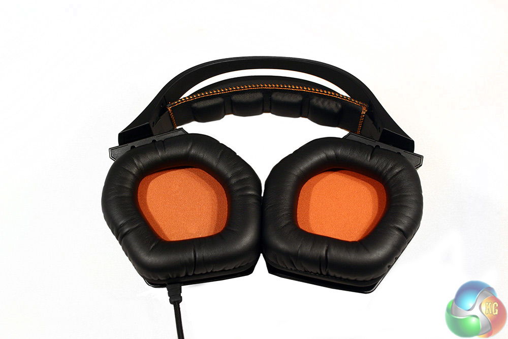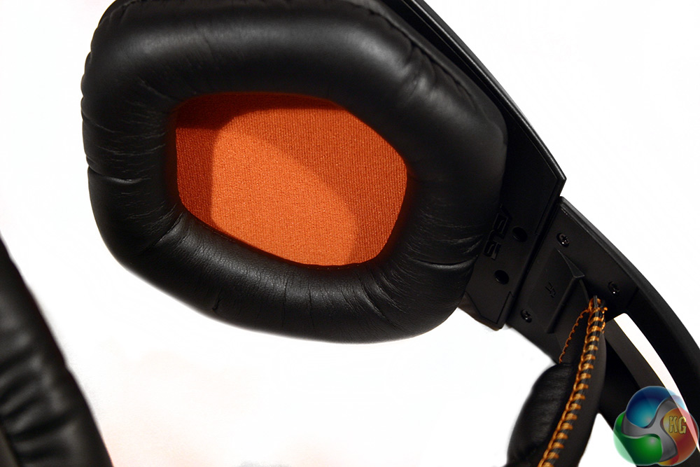 The ear cups themselves are made of with leather padded memory foam and have orange cotton covering the drivers themselves. It is all nicely contrasted with the black, matt frame and the slightly glossier earcup padding.