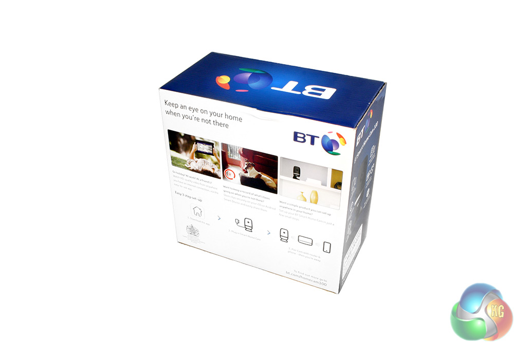 The packaging for the BT Smart Home Cam 100 is what you would expect from an official BT product. The box art is designed to show how simple the camera and its companion application are to operate.