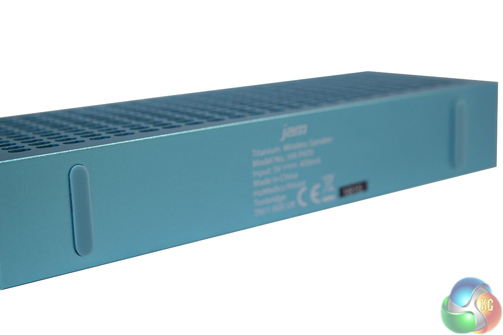 The underside features a pair of low profile rubber feet to help hold the speaker in place and prevent it from scratching surfaces.