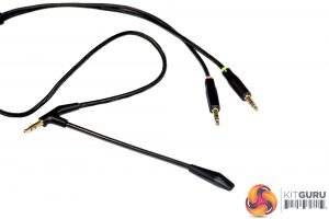 There are two included cables with the Roccat Cross: one for mobile and one for PC gaming. The former has an in-line microphone which can be muted by a built-in switch and terminates in a single 3.5mm connector. The latter features a larger boom mic, which outputs to twin 3.5mm connectors – one for the mic and the other for audio.