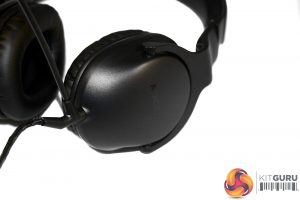 Like the earcups, the Roccat headband is padded with memory foam and features a Roccat logo. The band itself features edge stitching and a leatherette coating.
