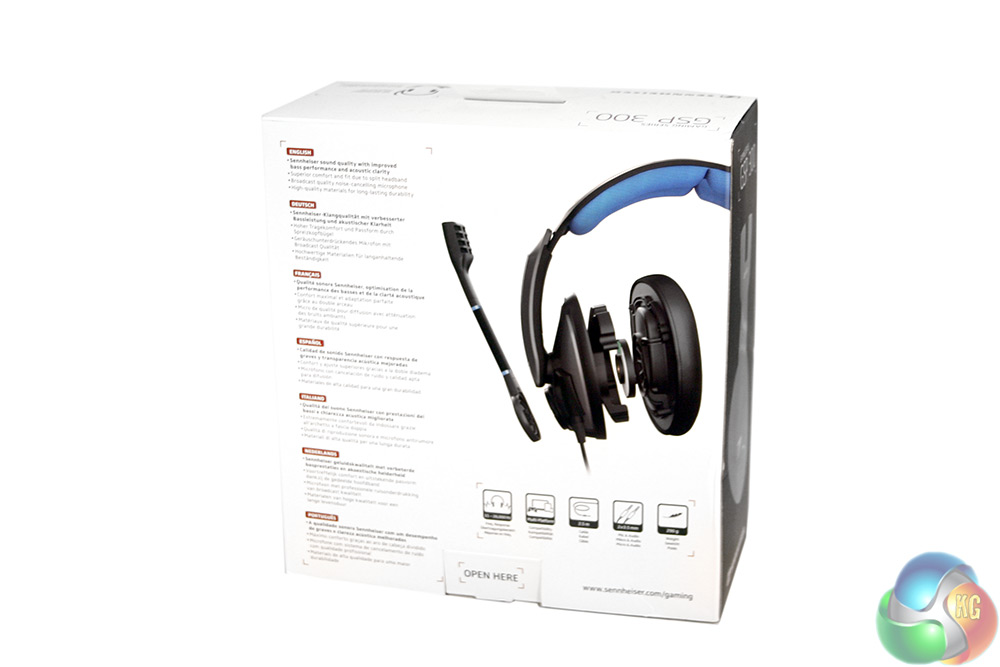 The packaging for the Sennheiser GSP 300 is of a high standard, with a nice mix of glossy and matte card, and a big, artistically shot picture of the headset itself.