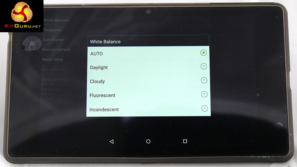 Basically you select photo or video, confirm the video is recording at 1080p rather than 720p, leave White Balance on Auto and decide whether you want to shoot a video clip of a pre-set limit or to keep recording until you press the button again. You might expect to be able to change the Field Of View or to adjust the microphone level but this isn't an option with the Amkov. You can, however, adjust the digital zoom but this is a bad idea as the results look very poor.