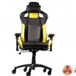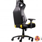 There are five colour combinations available for T1 Race – full black plus black with blue, red, yellow or white trim. As you will see in our video we got the yellow option which looks pretty darn spiffing and also happens to match the colour flash of Corsair packaging. The colours look good and will doubtless prove popular. Perhaps the most interesting thing about Corsair T1 Race is the price which is set below £300 in a world where many gaming chairs are north of £400 and the Vertagears we recently reviewed were £500 and £600 each.