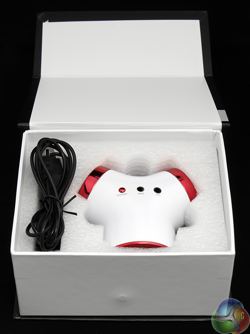 Flip open the magnetic flap on the box and you'll find the Cutebeat BT nestling in a foam block along with a USB cable.