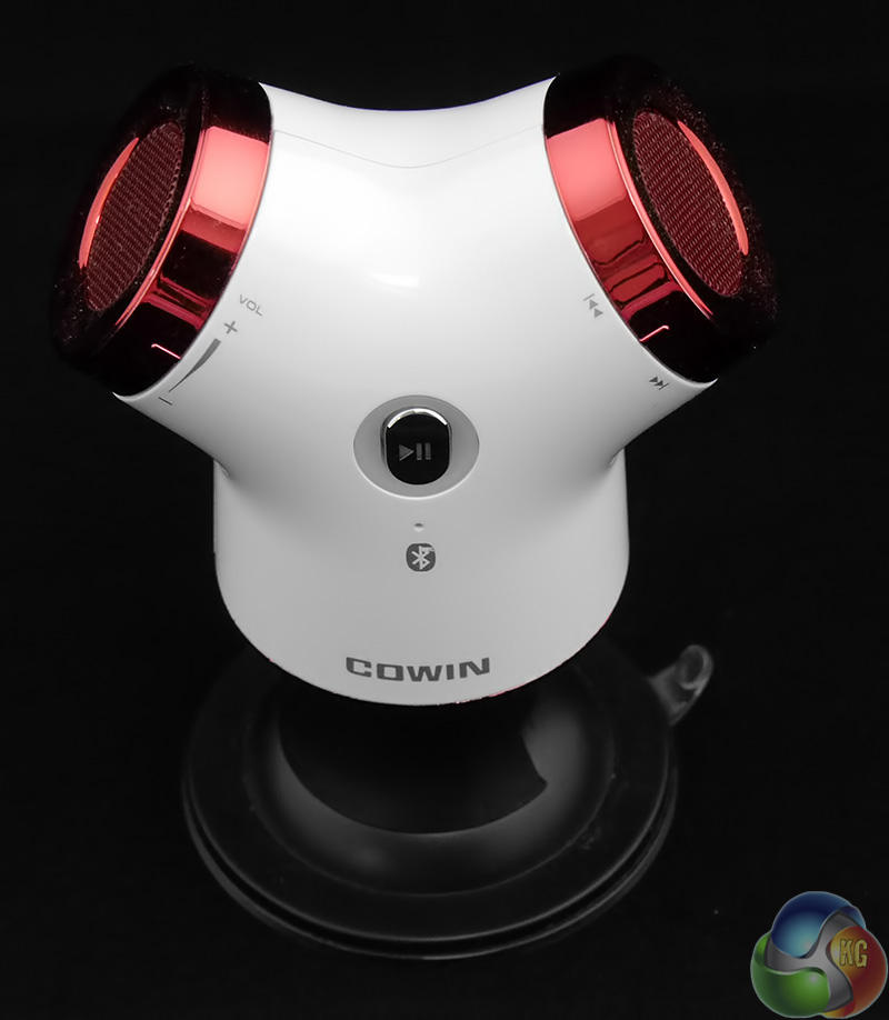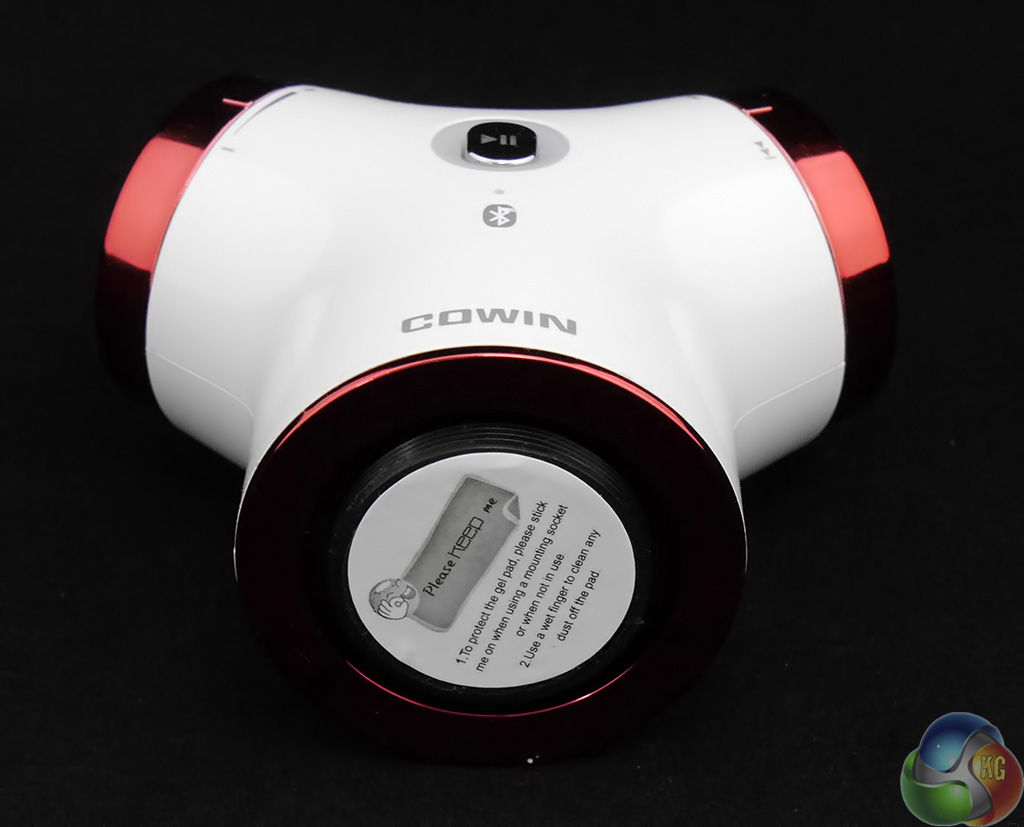 The base of the speaker is more significant than you might expect. Cowin makes resonator speakers that have a moveable plate at the base that is driven by the voice coil. This means that Cowin speakers use the surface on which the speaker is standing as part of the speaker. That, in turn, means that a vibration speaker need to be connected to the surface and cannot simply rest in place.