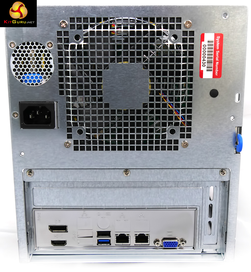 On the rear of the chassis we have a third USB 2.0 port, a single USB 3.0 port, dual Gigabit Ethernet, VGA, HDMI and DisplayPort outputs. This business of NAS companies supplying only one or two USB 3.0 ports seems like penny pinching and is thoroughly frustrating.
