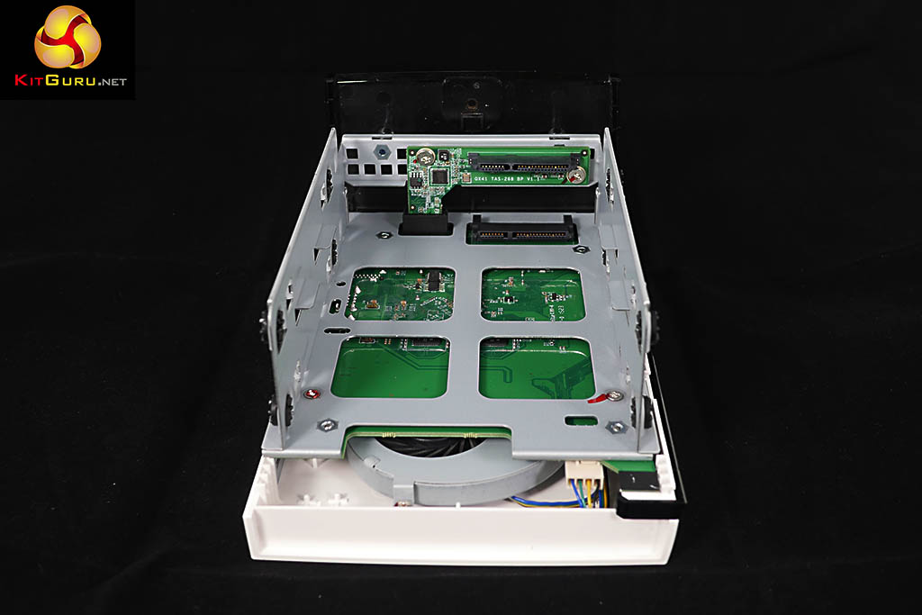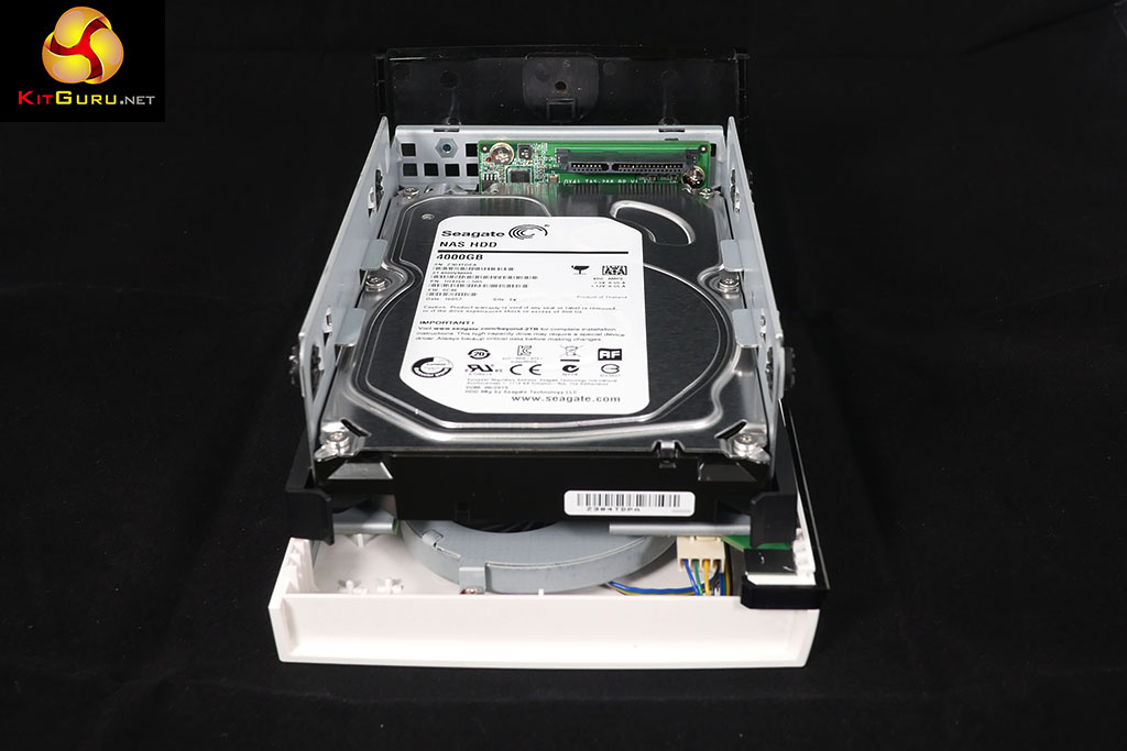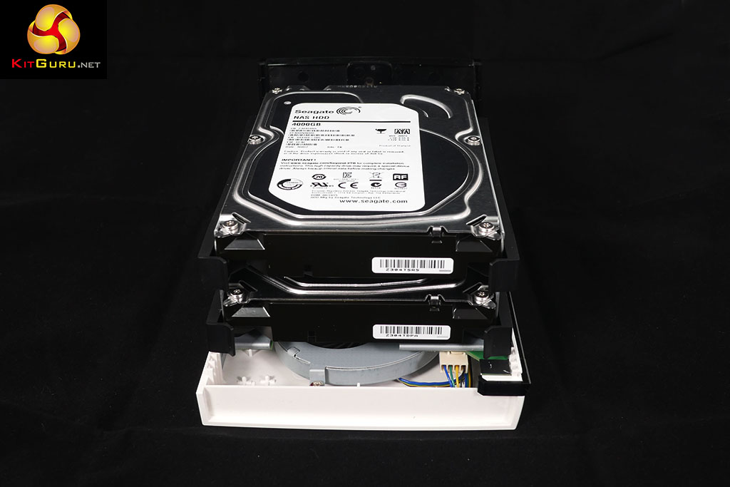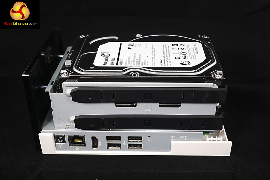 As you will see in our video and photos, it only takes a moment to remove the cover to reveal the two drive mounts. These mounts use clip-on rails that are tool-free, however you are unable to use a 2.5-inch HDD or SSD as the mounts are only compatible with 3.5-inch drives.