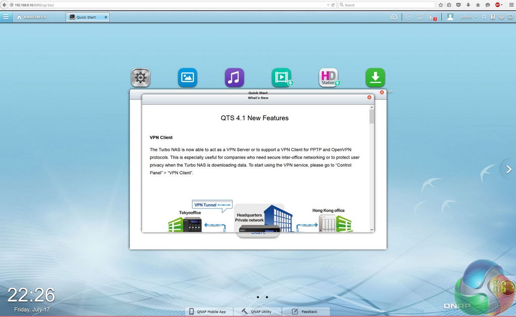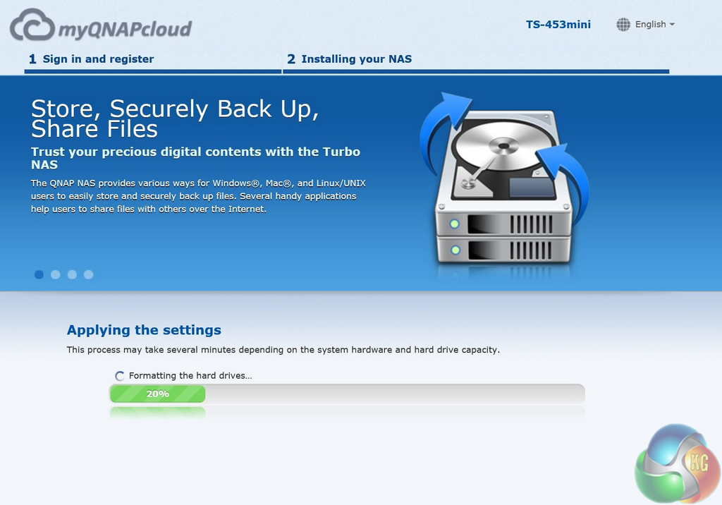 Once the drives are installed and the power is connected you turn the NAS on, wait a minute or two and then install QNAP QTS 4.1 software.