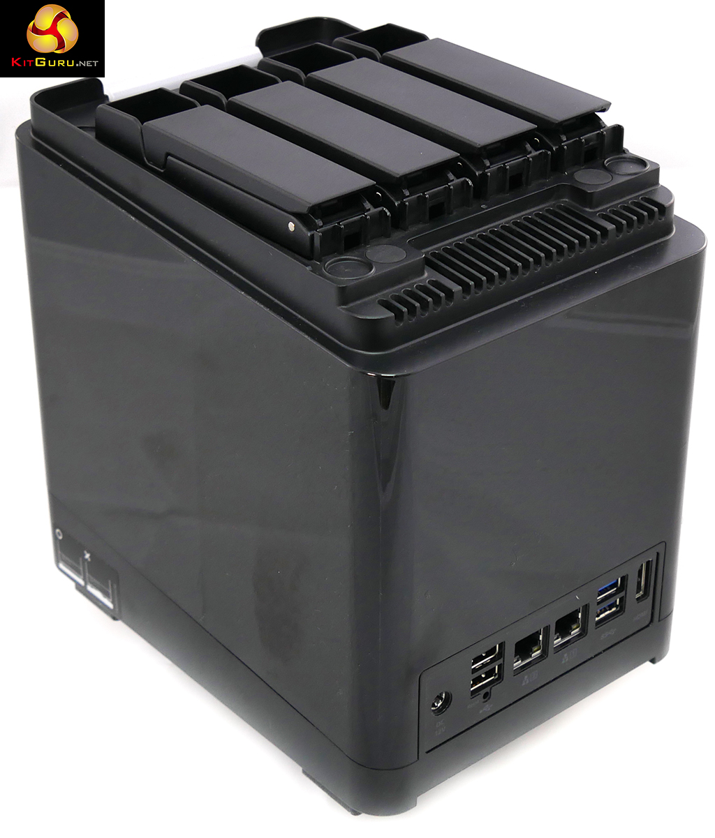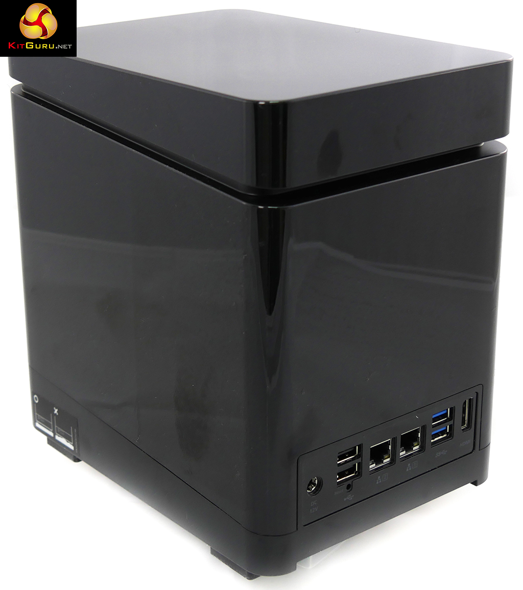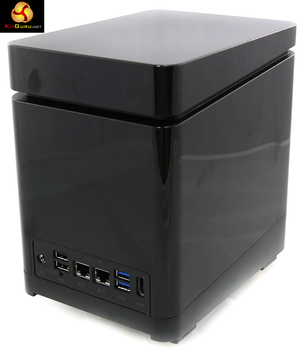 Take a look on the rear and you'll see that in addition to the usual pair of Gigabit Ethernet ports, USB 3.0 and USB 2.0 you also get an HDMI output. While you can certainly use the TS-453mini as a traditional NAS that is parked at the end of an Ethernet cable, you can also connect a mouse and keyboard and plug in a monitor to use the device as a Celeron powered mini computer.