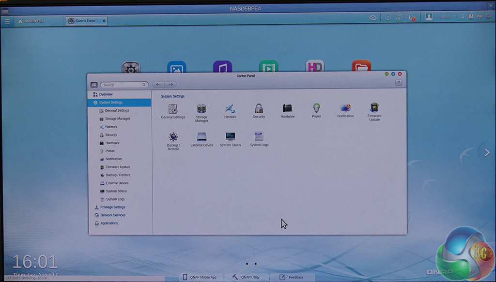 The QTS home screen and Control Panel are entirely intuitive. With a monitor connected directly over HDMI the image required scaling to fit the screen correctly and this took no more than one minute of digging around in the settings. When you are directly connected the system automatically downloads and installs HybridDesk Station and Chrome (about 300MB together) which then presents a desktop that appears identical to the user experience when you connect to the TS-453mini across the network.