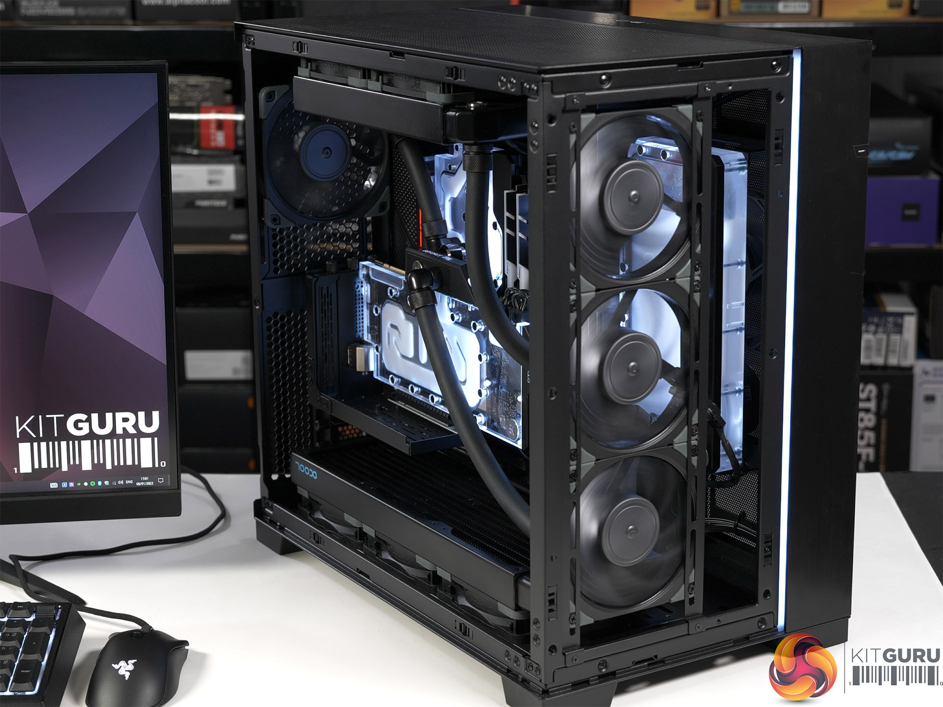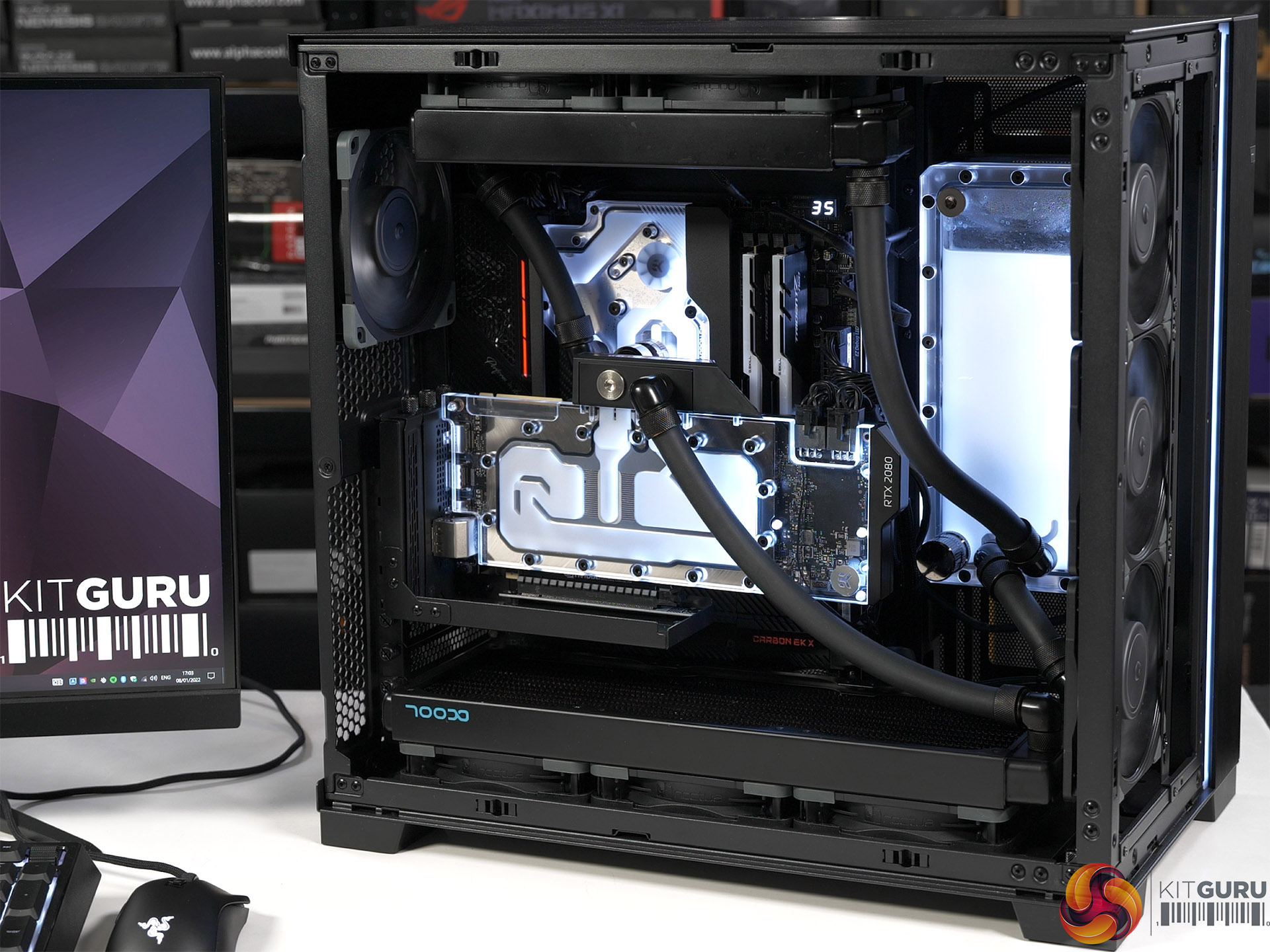 The case used for the new build is the Lian Li O11 Dynamic EVO which stormed through a recent review here at KitGuru. The motherboard is an MSI MPG X570S Carbon EK X that appeared in this recent video where we took an in-depth look at custom loop cooling in the Lian Li.