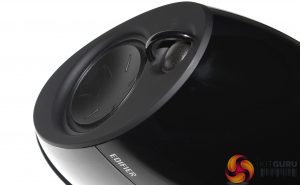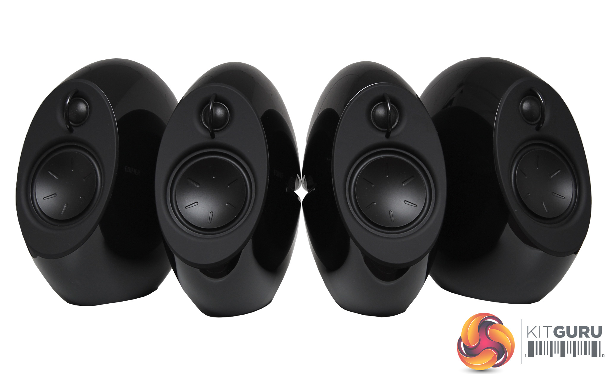The tweeters on all the speakers are protective by a curved piece of metal. All of the surround speakers have 2 additional passive base speakers located in the gap. Edifier claim that this enhances overall bass output.