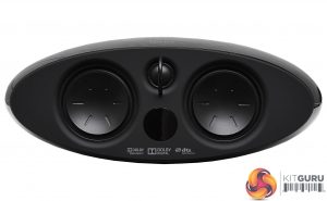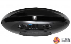 The front mounted OLED is situated just under the tweeter on the central speaker. It has a basic, blue look and feel – reminiscent of an early generation digital alarm clock. The advantage of having a screen on your speakers is that you can see that they’re working (and in which mode), without having to refer to a computer screen.