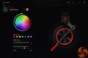 As with most RGB peripherals, there is a colour wheel allowing you to pick a specific colour. You can choose from several effects, including colour cycle, breathing, heartbeat, or just on/off. The effects all work well, but I ended up sticking with a solid purple light throughout my usage.