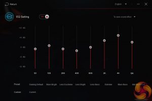 Lastly, there is also an EQ page which lets you choose between a number of EQ presets or create your own custom EQ with control over 8 frequency bands.