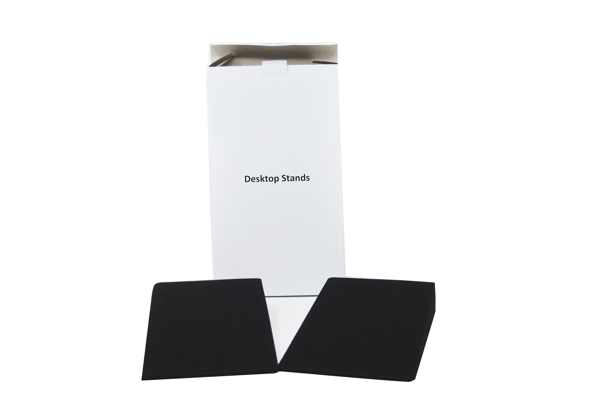 Finally, you also get a handy pair of foam monitor stands. If you are using these at a desk, then these will be perfect for eliminating unwanted vibrations.