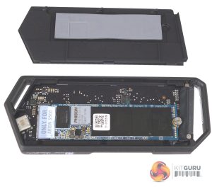 To keep your data secure it supports AES-256 encryption, TCG Pyrite and OPAL. As well as the chassis being used as a heatsink there are also thermal pads that sit between the drive and the top of the enclosure.