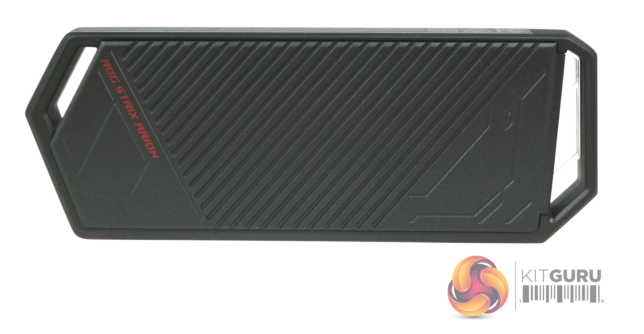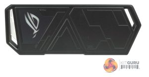 Measuring 125 x 48 x 11mm (l x w x h) the Strix Arion S500 uses a well-built aluminium alloy chassis. To give you an idea of the build quality of the enclosure, it weighs in at 107g and with only an M.2 NVMe drive and a 10Gbps NVMe to USB-C internal bridge in it, most of that weight is the enclosure itself. One end of the drive and the ROG logo light up and can be customised thanks to ASUS Aura Sync lighting technology.